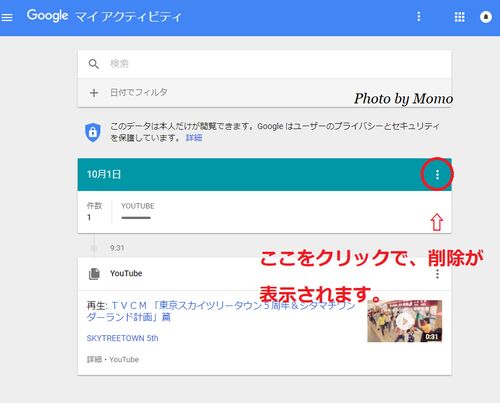 Googleの検索履歴を消す方法 kakakumag.com 早速試してみました。 簡単でしたよ! Googleの検索画面 「自分のアイコン」をクリック 「アカウント」をクリック 「個人情報とプライバシー」をクリック 「マイアクティビティ」をクリック 自分の利用履歴が日付…